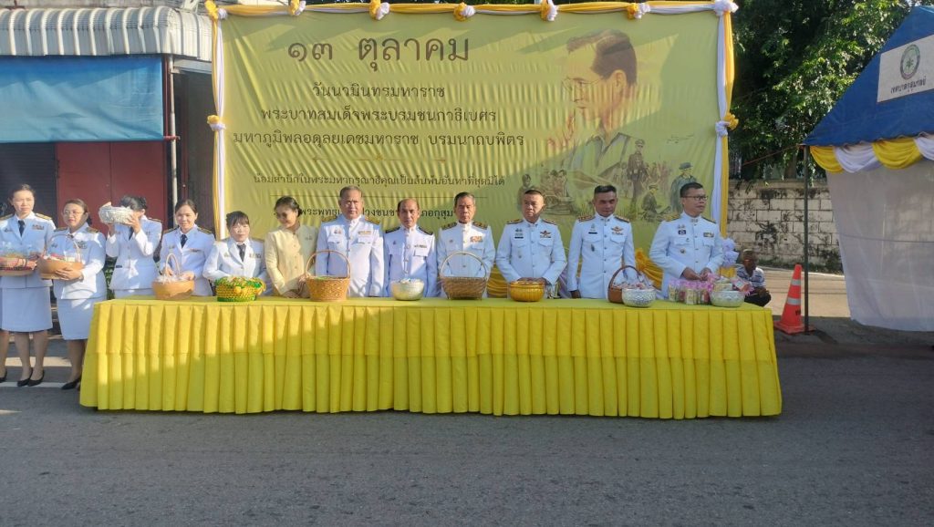 พ.ต.อ.อนุสรณ์ มั่งมี ผกก.สภ.กุสุมาลย์, พ.ต.ท.สุพจน์ นาสถิตย์ รอง ผกก.(สอบสวน) ฯ,พ.ต.ท.อาทิตย์ แสนวัง รอง ผกก.ป.ฯ พร้อมด้วยข้าราชการตำรวจสภ.กุสุมาลย์ ร่วมพิธีทำบุญตักบาตร เพื่อถวายเป็นพระราชกุศลเนื่องในวันนวมินทรมหาราช 13 ตุลาคม 2567 ณ บริเวณหน้าวัดกลาง อ.กุสุมาลย์ จ.สกลนคร พร้อมหัวหน้าส่วนราชการ หน่วยงานราชการทุกภาคส่วน โดยมี นายปรีชา มณีสร้อย นายอำเภอกุสุมาลย์ เป็นประธานในพิธี