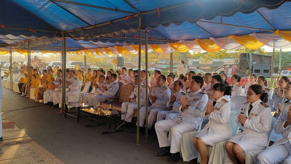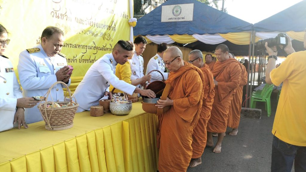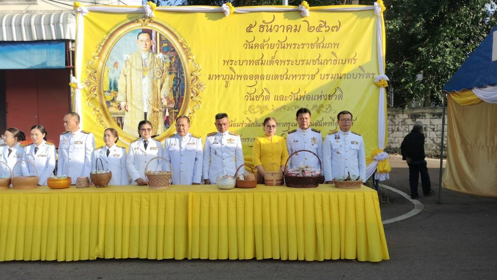 พ.ต.อ.อนุสรณ์ มั่งมี ผกก.สภ.กุสุมาลย์ พร้อมด้วย พ.ต.ต.วิษณุ ไชยฮะนิจ สวป.สภ.กุสุมาลย์, พ.ต.ต.วานิต บุตะภักดิ์ สว.อก.สภ.กุสุมาลย์ ข้าราชการตำรวจในสังกัดสภ.กุสุมาลย์ พร้อมหัวหน้าส่วนราชการ หน่วยงานราชการทุกภาคส่วน ร่วมพิธีเจริญพระพุทธมนต์ และทำบุญตักบาตรถวายพระราชกุศล เนื่องในวันคล้ายวันพระบรมราชสมภพ พระบาทสมเด็จพระบรมชนกาธิเบศร ภูมิพลอดุลยเดชมหาราช บรมนาถบพิตร วันชาติ และวันพ่อแห่งชาติ 5 ธันวาคม 2567 ณ. บริเวณหน้าวัดกลางกุสุมาลย์ อ.กุสุมาลย์ จ.สกลนคร