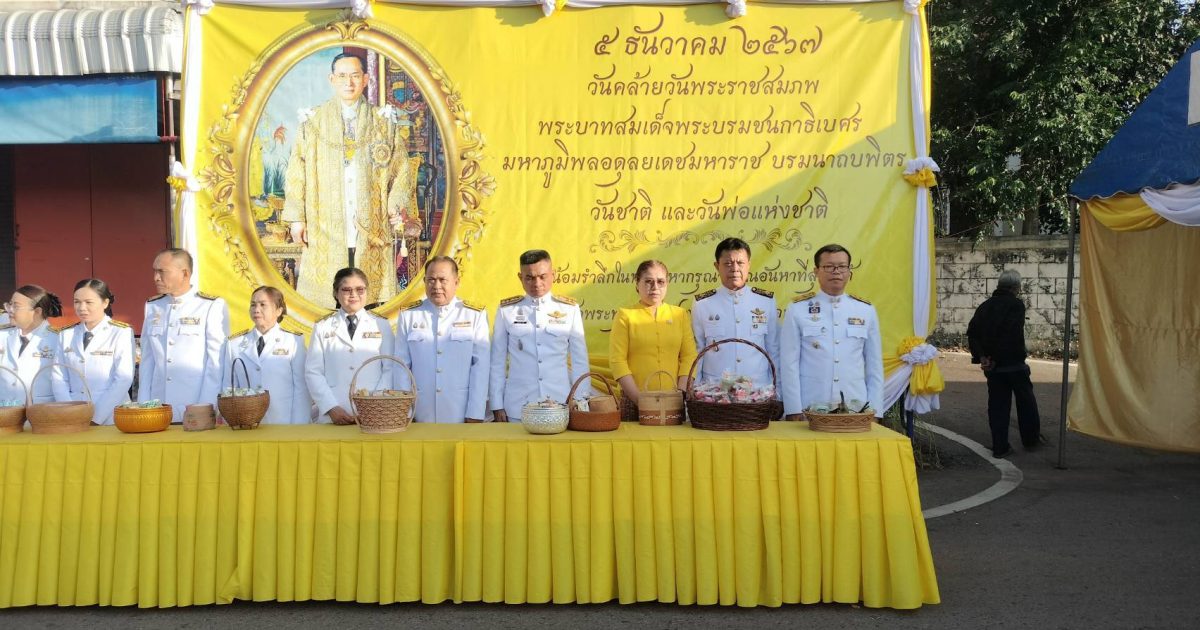 พ.ต.อ.อนุสรณ์ มั่งมี ผกก.สภ.กุสุมาลย์ พร้อมด้วย พ.ต.ต.วิษณุ ไชยฮะนิจ สวป.สภ.กุสุมาลย์, พ.ต.ต.วานิต บุตะภักดิ์ สว.อก.สภ.กุสุมาลย์ ข้าราชการตำรวจในสังกัดสภ.กุสุมาลย์ พร้อมหัวหน้าส่วนราชการ หน่วยงานราชการทุกภาคส่วน ร่วมพิธีเจริญพระพุทธมนต์ และทำบุญตักบาตรถวายพระราชกุศล เนื่องในวันคล้ายวันพระบรมราชสมภพ พระบาทสมเด็จพระบรมชนกาธิเบศร ภูมิพลอดุลยเดชมหาราช บรมนาถบพิตร วันชาติ และวันพ่อแห่งชาติ 5 ธันวาคม 2567 ณ. บริเวณหน้าวัดกลางกุสุมาลย์ อ.กุสุมาลย์ จ.สกลนคร