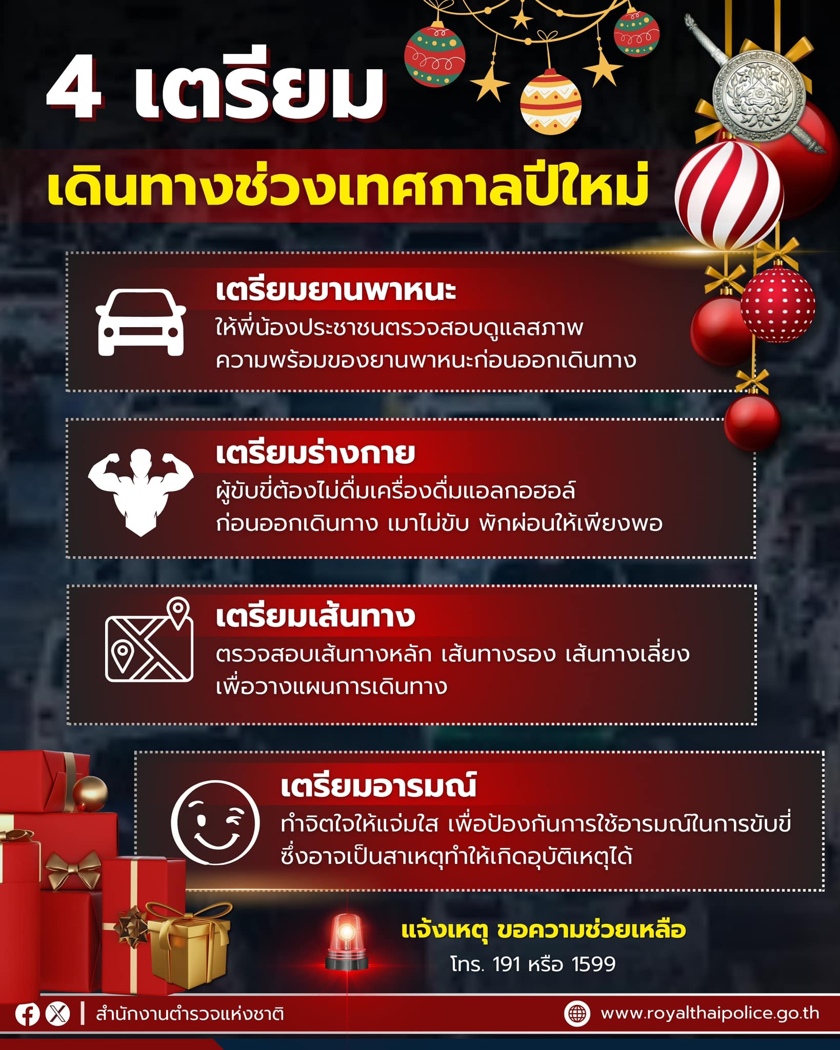 📣 4 เตรียม ทำให้พร้อมก่อนเดินทางช่วงเทศกาล #ปีใหม่2568 พล.ต.ท.สำราญ นวลมา ผู้ช่วย ผบ.ตร. ฝากถึงพี่น้