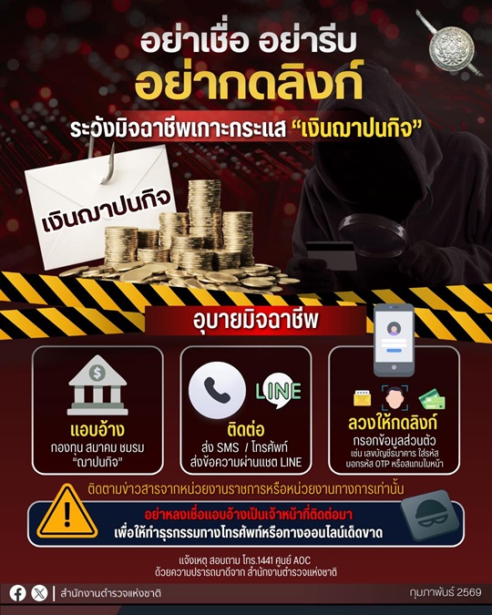 🚨อย่าเชื่อ อย่ารีบ อย่ากดลิงก์ระวังมิจฉาชีพ เกาะกระแส “เงินฌาปนกิจ” ‼️.⚠️อุบายมิจฉาชีพ⚠️ 🚫 แอบอ้างมา