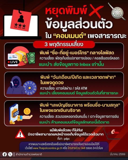⚠️หยุดพิมพ์ข้อมูลส่วนตัว ในคอมเมนต์เพจสาธารณะ 🚫 พิมพ์ชื่อ-ที่อยู่/เบอร์โทร กลางไลฟ์สด 🚫 พิมพ์วัน-เด