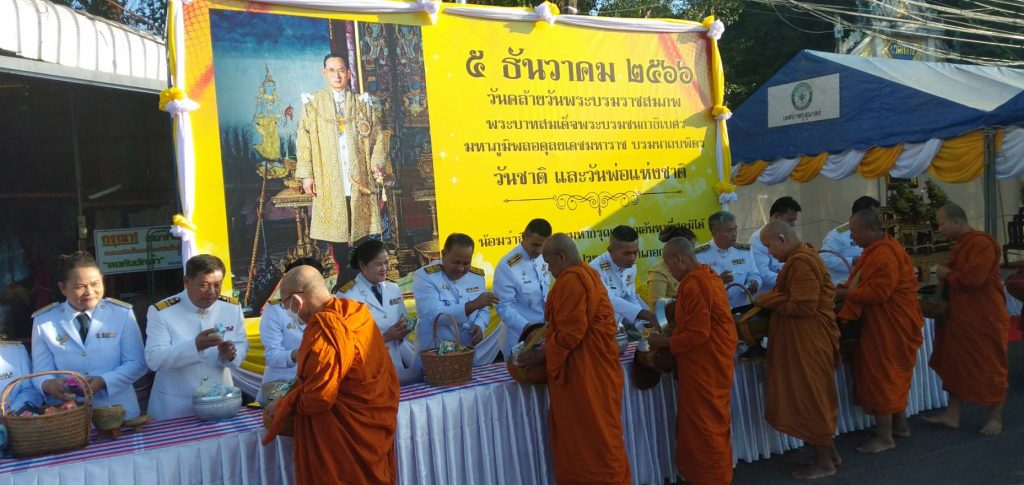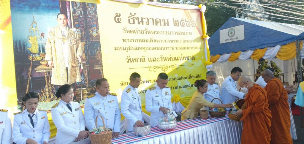 พ.ต.อ.อนุสรณ์ มั่งมี ผกก.สภ.กุสุมาลย์ พร้อมด้วย พ.ต.ท.อาทิตย์ แสนวัง รอง ผกก.ป.ฯ, พ.ต.ต.วิษณุ ไชยฮะนิจ สวป.ฯ ร่วมพิธีทำบุญตักบาตรเพื่อถวายเป็นพระราชกุศล เนื่องในวันคล้ายวันพระบรมราชสมภพ พระบาทสมเด็จพระบรมชนกาธิเบศร ภูมิพลอดุลยเดชมหาราช บรมนาถบพิตร วันชาติ และวันพ่อแห่งชาติ 5 ธันวาคม 2566 ณ. บริเวณหน้าวัดกลางกุสุมาลย์ อ.กุสุมาลย์ จ.สกลนคร