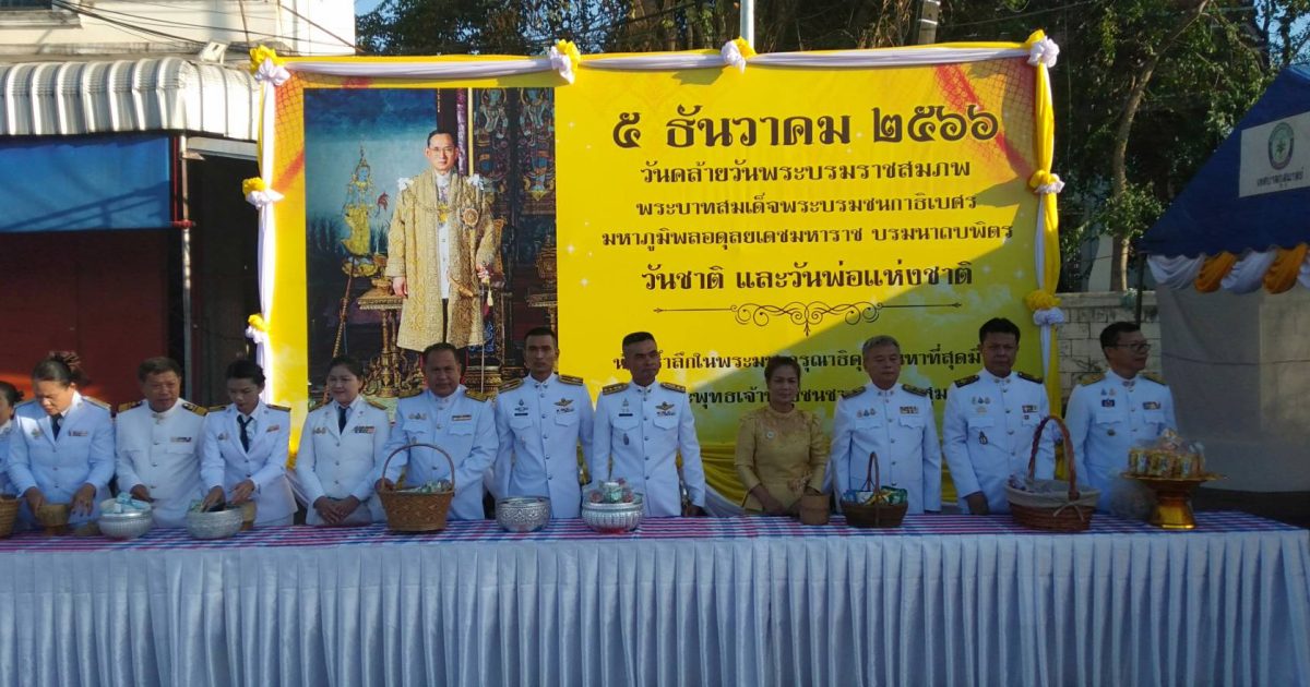 พ.ต.อ.อนุสรณ์ มั่งมี ผกก.สภ.กุสุมาลย์ พร้อมด้วย พ.ต.ท.อาทิตย์ แสนวัง รอง ผกก.ป.ฯ, พ.ต.ต.วิษณุ ไชยฮะนิจ สวป.ฯ ร่วมพิธีทำบุญตักบาตรเพื่อถวายเป็นพระราชกุศล เนื่องในวันคล้ายวันพระบรมราชสมภพ พระบาทสมเด็จพระบรมชนกาธิเบศร ภูมิพลอดุลยเดชมหาราช บรมนาถบพิตร วันชาติ และวันพ่อแห่งชาติ 5 ธันวาคม 2566 ณ. บริเวณหน้าวัดกลางกุสุมาลย์ อ.กุสุมาลย์ จ.สกลนคร