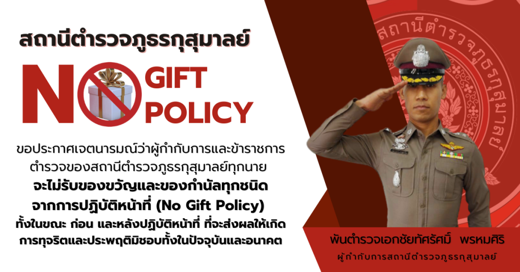 2. เพื่อส่งเสริมให้ข้าราชการตำรวจในสังกัด มีจิตสำนึกในการปฏิเสธการรับของขวัญและของกำนัลทุกชนิดจากการปฏิบัติหน้าที่